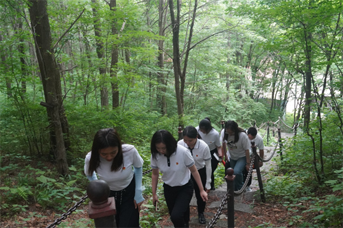 红歌活动结束后,全体党员同志“重走抗联路”,用双脚丈量历史长度,追寻抗联足迹,亲身体验抗联英雄扎根深山坚持抗战的艰辛,感受东北抗联的恶劣斗争环境和战士英勇战斗、不怕牺牲的伟大精神力量。